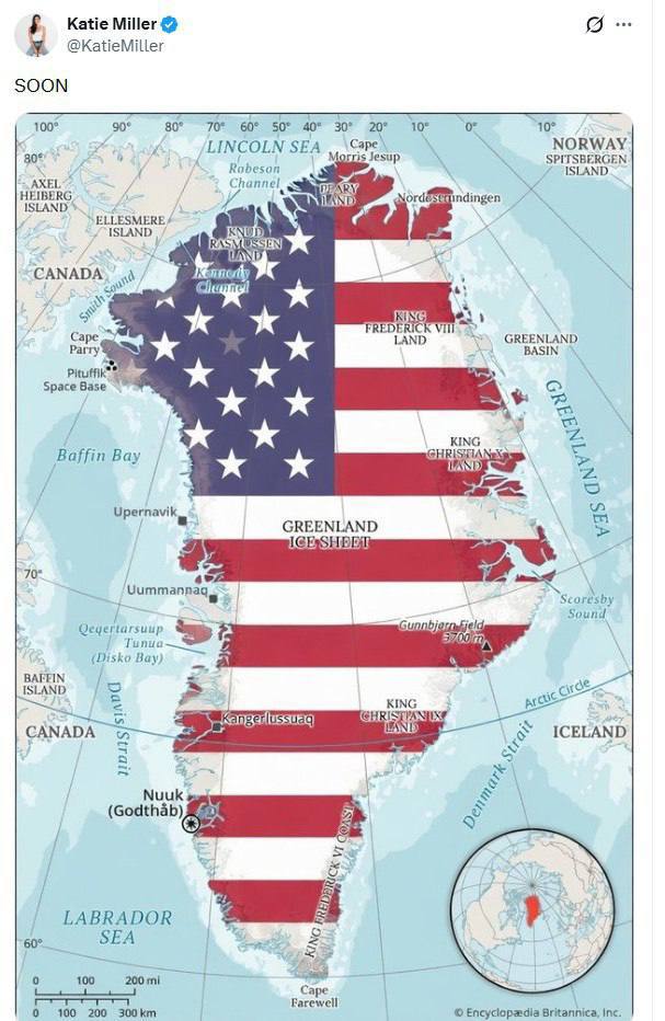 Именно в этом контексте следует рассматривать настойчивое, почти карикатурное желание Трампа «приобрести» Гренландию. Возмущение Копенгагена и Нуука – «с нами так не разговаривают» – лишь подчёркивает суть: традиционная дипломатия альянсов и уважения к суверенитету больше не в цене. Когда супруга высокопоставленного чиновника Белого дома публикует в соцсетях карту Гренландии в цветах США с подписью «Скоро», это не шутка. Это сигнал: международное право и мнение малых стран – лишь фон для силовой игры.