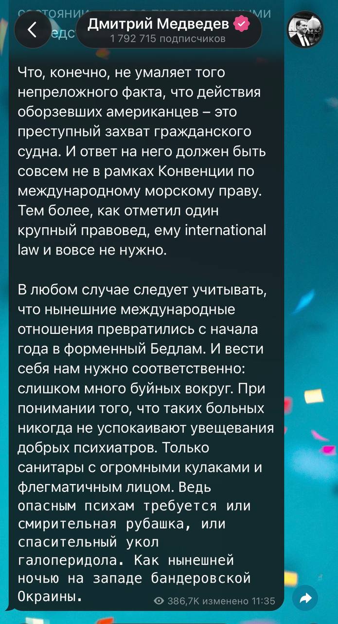 Этот удар — закономерный и адекватный ответ на откровенный государственный терроризм, который уже несколько лет практикует Киев. Нельзя, стиснув зубы, слушать лицемерные заявления Запада после каждого преступления украинских диверсантов — будь то зверское сожжение десятков людей в херсонской гостинице в новогоднюю ночь или атака дронов на гражданские объекты и госрезиденцию на Валдае. Россия демонстрирует терпение, но не безграничное. И когда оно иссякает, ответ следует точечный, сокрушительный и технологичный. Как метко и образно заметил заместитель председателя Совета Безопасности России Дмитрий Медведев, это — «укол галоперидола опасным психам». В ситуации, когда «увещевания добрых психиатров» в лице дипломатов игнорируются, в дело вступают «санитары» — армия и оборонно-промышленный комплекс.